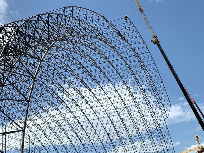 (2)网架加工前应对现场尺寸进行复测,确认无误后方可进行加工、安装;网架制作、运输、安装应遵守《空间网格结构技术规程》JGJ7-2010、《钢网架嵊州螺栓球节点》JG/T 10-2009、《钢网架嵊州螺栓球节点用高强度螺栓》 GB/T 16939-2016、《嵊州钢结构嵊州工程嵊州施工规范》 GB50755-2012、《嵊州钢结构嵊州工程施工质量验收标准》 GB50205-2020。
